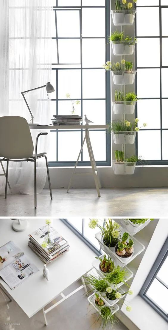 种在收纳袋里,挂在墙上,做一个立体的菜墙。就像墙壁上长满了新鲜的蔬菜,既节省空间又很有创意。