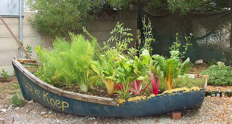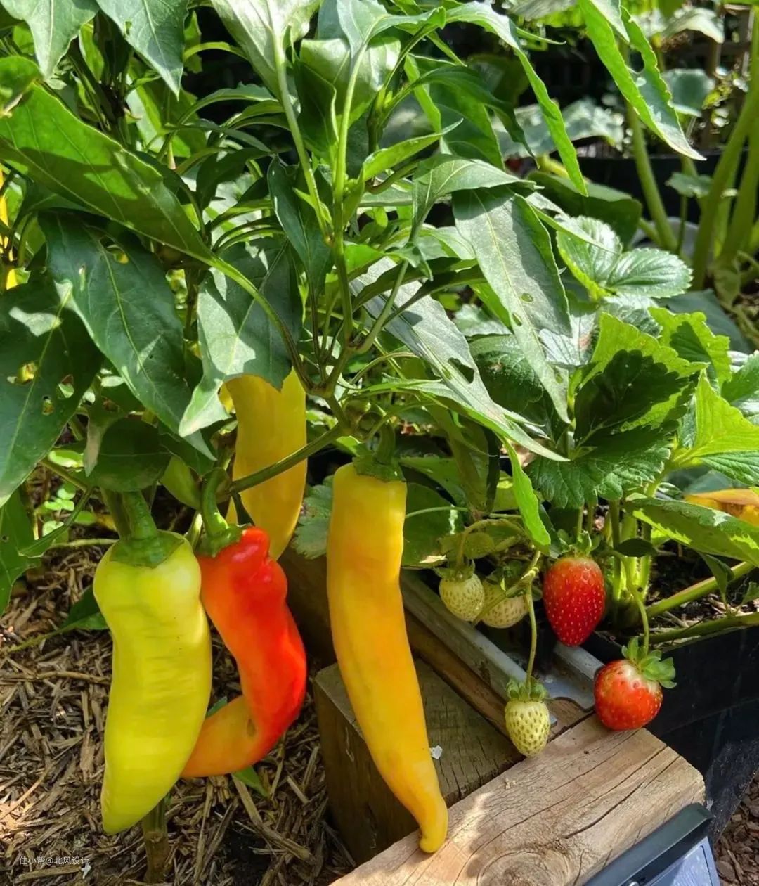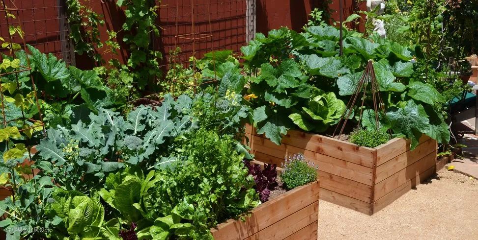 用木箱做成框架,再用沙土积肥填充。每个季节种不同的蔬菜,给家里提供食用,又可美化环境,当蔬菜长大可食用时,那种喜悦是一般的花园比不了的。
