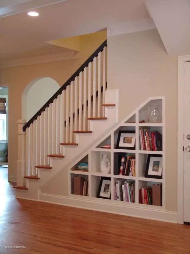 楼梯下打造成书柜格子。