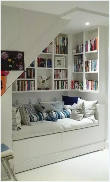 爱书如痴却苦于没有专门阅读区的你,何不将楼梯间好好利用起来,别看这片空间小,但是稍加布置也能摇身变为你的私人书房。