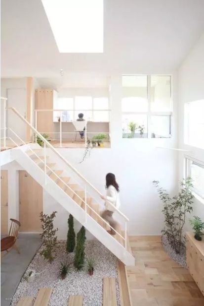 楼梯下变成植物园,就不用在意空间高矮啦。没有封的楼梯间也能让一楼更通透。