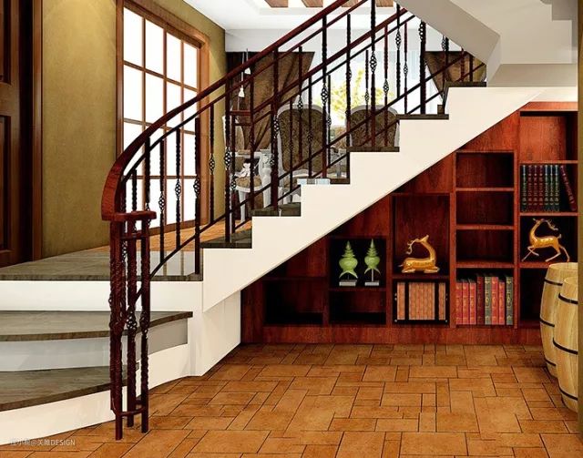 这款楼梯间设计,具有超大的储存量,能够放得下家里所有的杂物。这样,有客人来的话,杂物全不见了,留给你一个整洁干净的家。