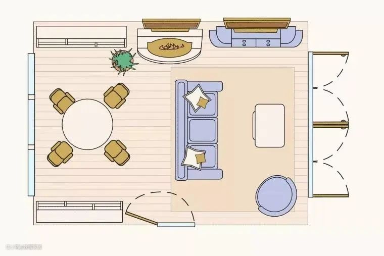 3. 通风:良好的室内通风是保证健康生活的前提,如果是分区不明显的客厅,设计隔断注意避免不合理的设计影响通风。