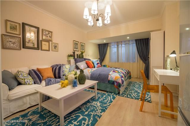 业主是一个90后的萌妹子,在广告公司的一枚编辑,设计师在装修前就按照业主个人的具体要求来对整间房子进行设计,以温馨感十足的韩式乡村风格来诠释整间屋子的惬意舒适,不管是把客厅卧室一体的设计,还是客厅中沙发背景墙的设计,都让这间屋子中充满着温馨。