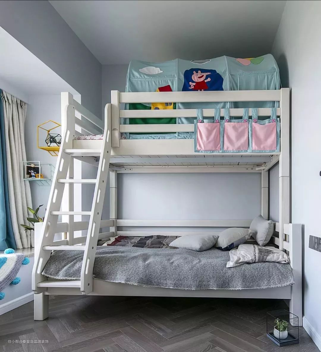 建议大家可以尝试一下,毕竟对于小户型来说,儿童房做个高低床,也能多出一个睡眠空间,这样也方便大人陪伴孩子,有同性别二胎的家庭,更是可以这样做。