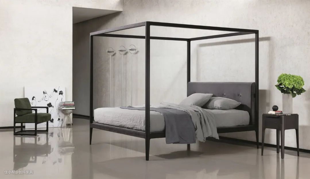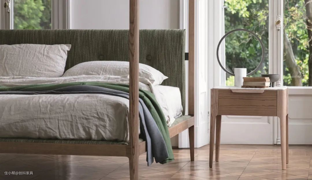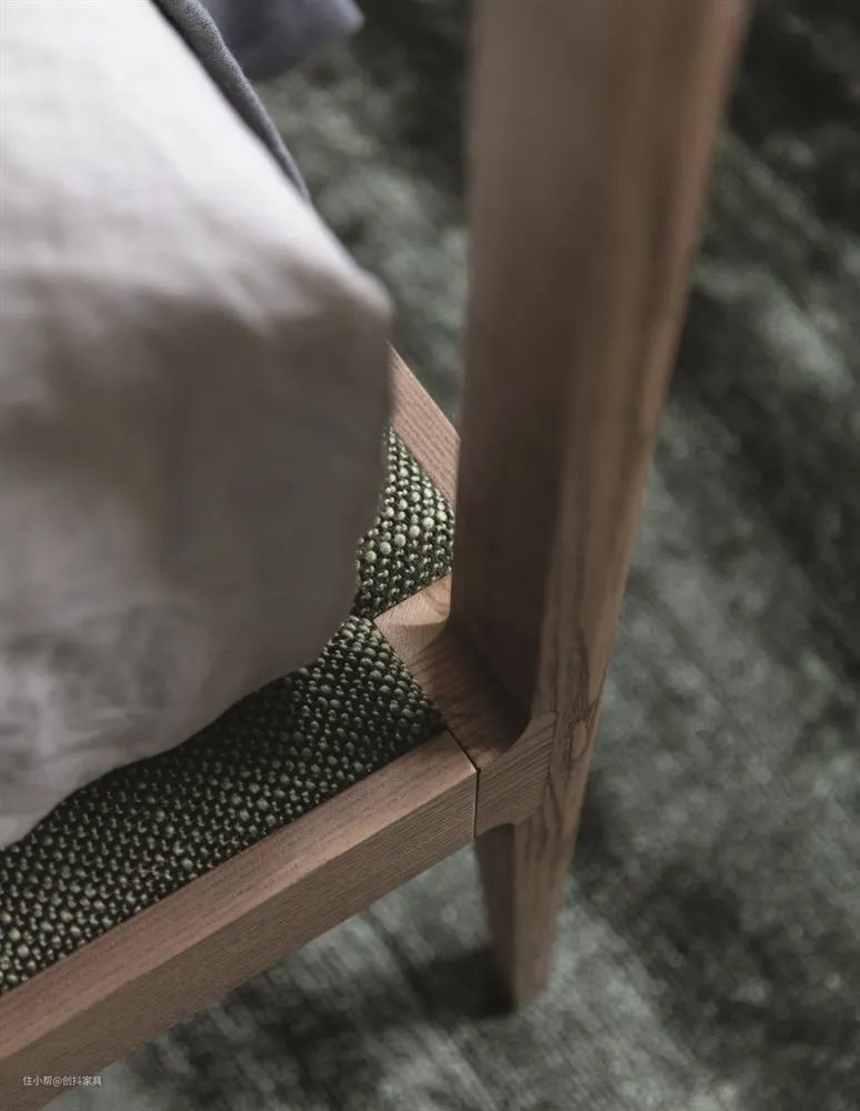这款床的木质框架是由天然胡桃木制成,有着强烈的视觉冲击力,外观看上去复古且精致。