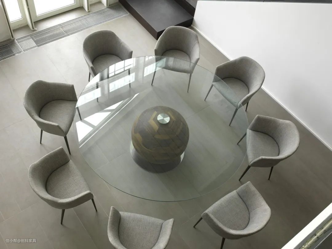 球形的木质底座和水晶台面,在强烈的个性和视觉明亮度之间创造了完美的平衡。