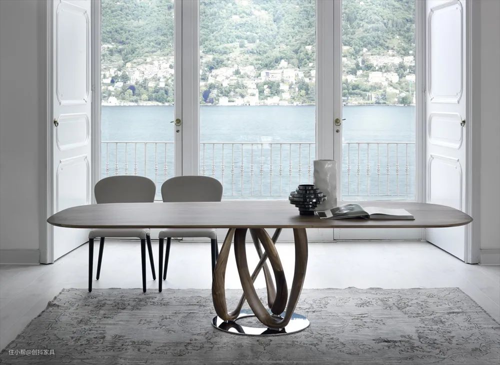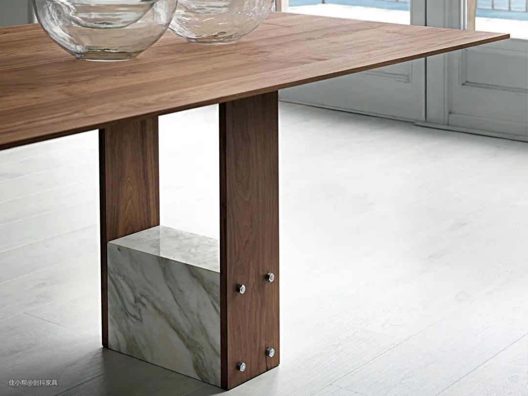 Shani 是一款豪华餐桌,由天然木材和正宗大理石的优雅搭配制成。看似简单的外观充满设计感,造型非常优美。