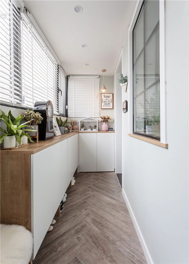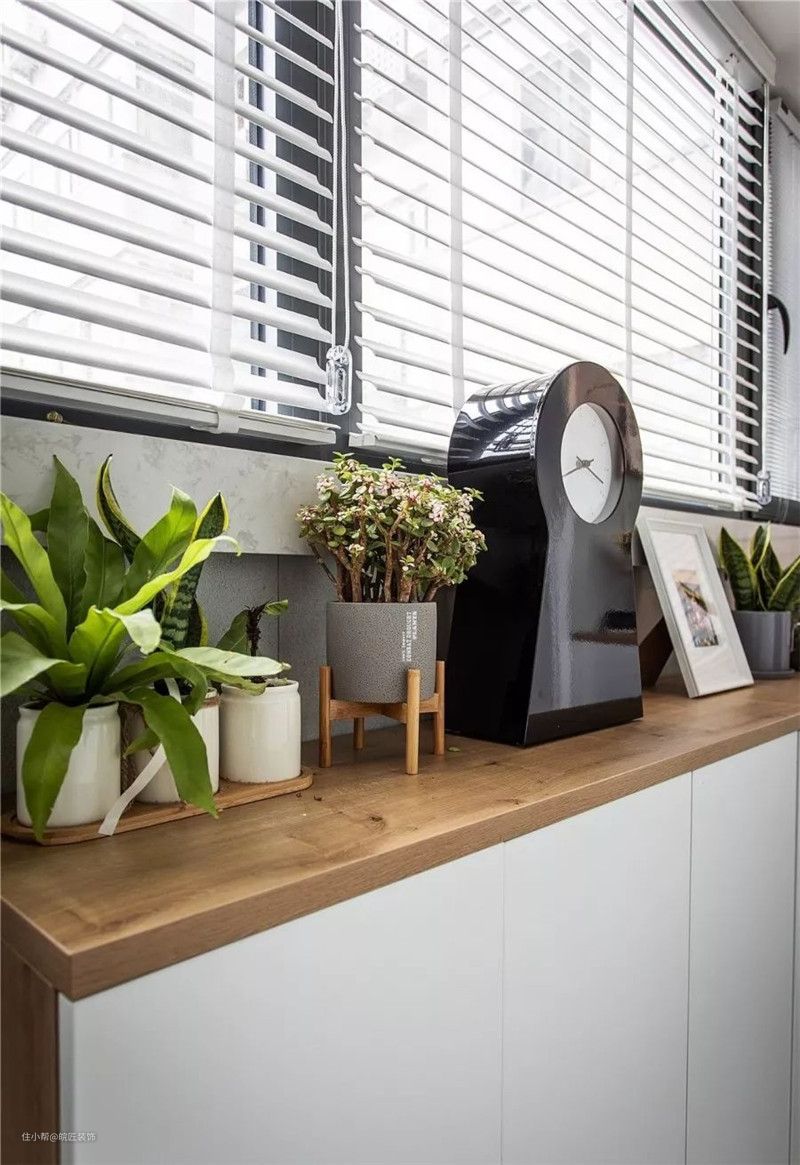 百叶帘的大窗户给阳台引入了极好的采光,还可以根据阳光自由调节光线,窗台上精致小巧的绿植使家里显得生气蓬勃,是休憩身心的好地方。