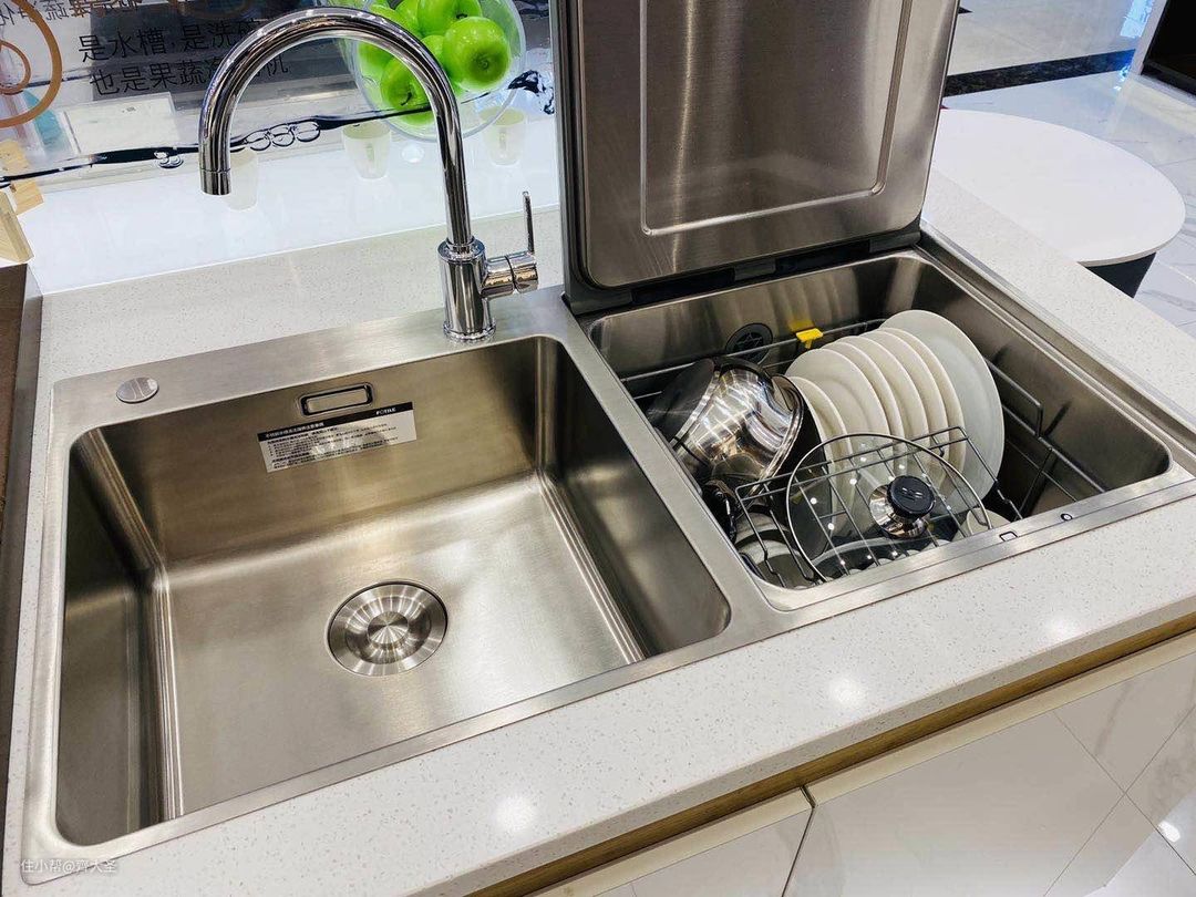 我们还是代入使用场景来看,水槽的作用无外乎洗菜洗碗洗锅等清洗工作,由于洗碗机的加入,这些工作都由其代劳了,对于传统水槽的使用强度远没有之前那么强烈了。(等同于水吧或中岛水槽)