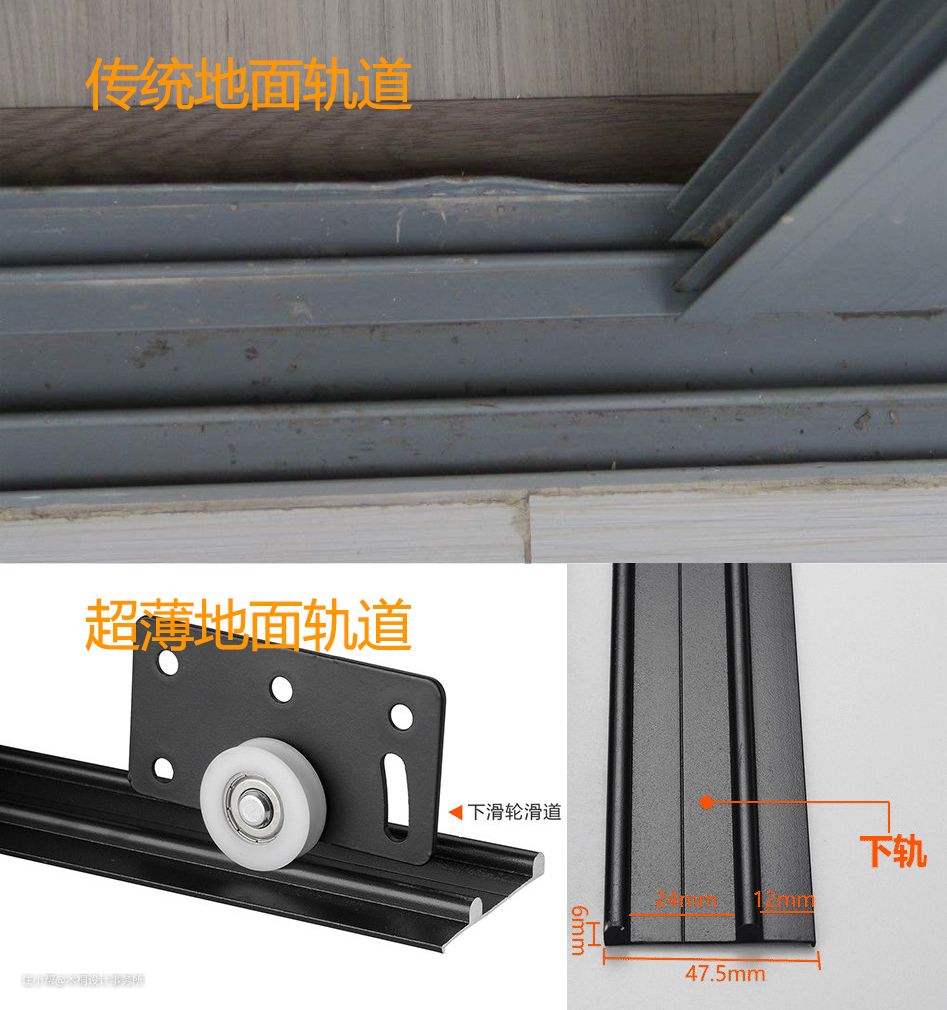 ①传统的地轨,轨道深度非常深,容易磕磕绊绊,而且卫生也不好打理。随着工艺的提升,现在的地轨也有特别浅的了,选这种只有6mm高的,打扫卫生非常方便。