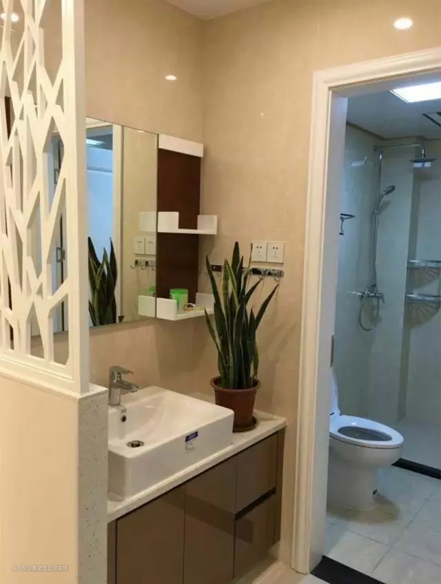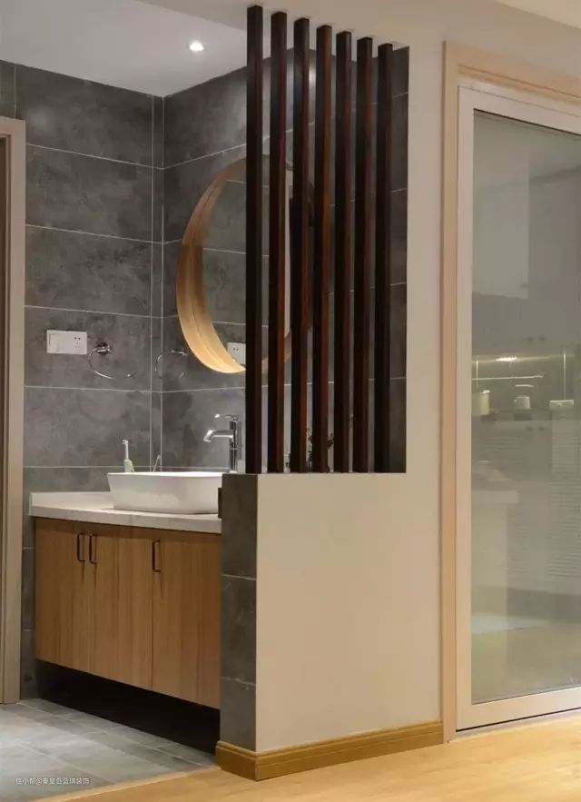 卫生间太小?把洗手台放在门外,搭配隔断更美