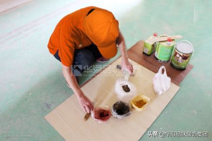A.根据饰面板基色用清油色粉等调配颜色,不要用水调,但要注意的是线条与面板颜色有误差,应分别调色。