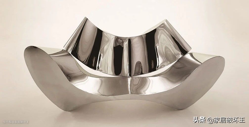 这款沙发采用的是镜面抛光的不锈钢材质,在材质上并没有什么特别,甚至很普通,设计上反而有些别具一格,它是由英国/以色列的工业设计师Ron Arad在1995年设计的。