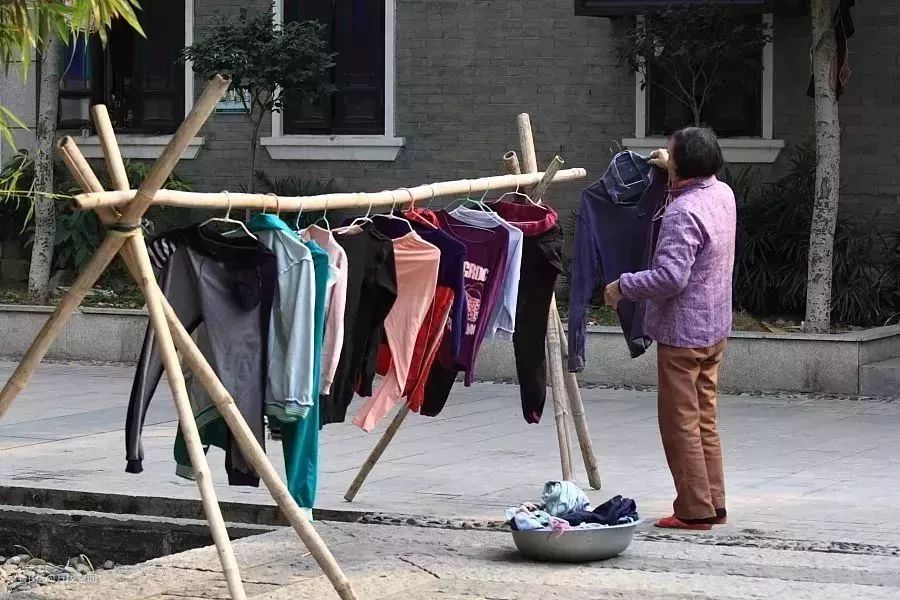 来体会下年少时的晾衣服方式。乡下坝子很多,完全不用担心空间不够用,如果真要说个担心的,那就是大风吧,风一吹就倒,然后衣服又得重洗。(目前,我家还没发生过,衣服挂多了,竹竿断掉的事故)