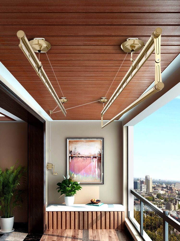 这算是最贵的一类晾衣杆,承载能力比手动升降晾衣杆更强,还不用担心它每天会被风吹的摇摇晃晃。