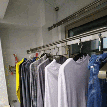 优势:成本低、结实耐用,只要杆子够长,衣服想挂多少挂多少。