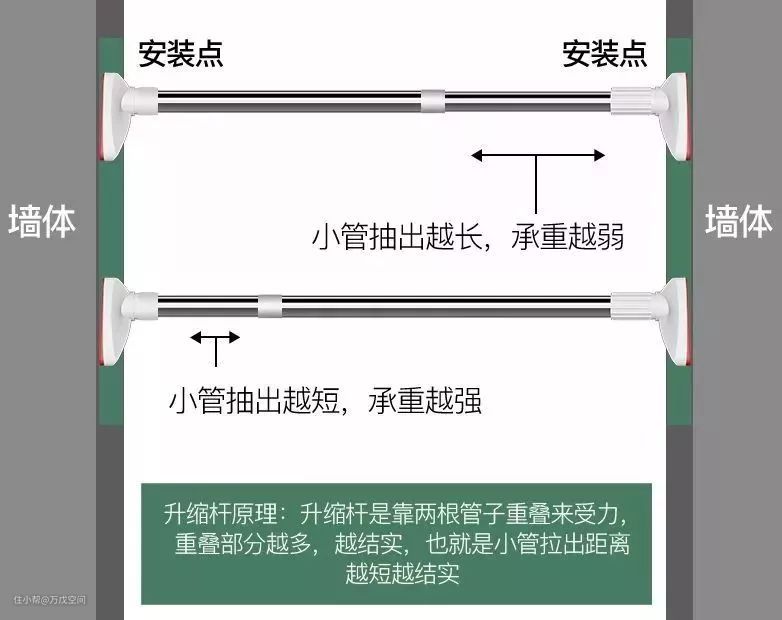 而它的杆子有伸缩的和固定的两种款式,如果需要将晾衣杆隐藏在吊顶里面,可以选择了伸缩款,减少占面,增加美观度。