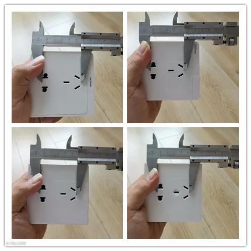 对于插座来说孔间距的重要性不必多说,只有拥有足够的孔间距,一款插座才能同时使用三孔插座和两孔插座,所以我就把每款插座的孔间距进行了测量。