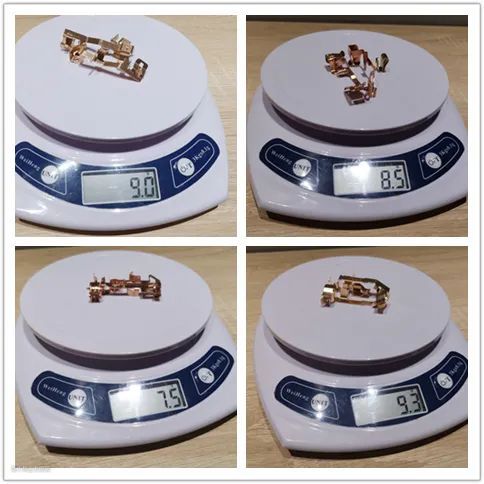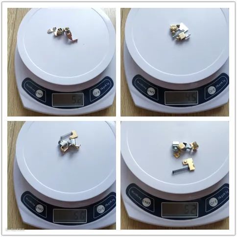 载流件重量方面西门子和西蒙相对来说较高,都超过了9g,施耐德和罗格朗较低,一个8.5g一个7.5g。