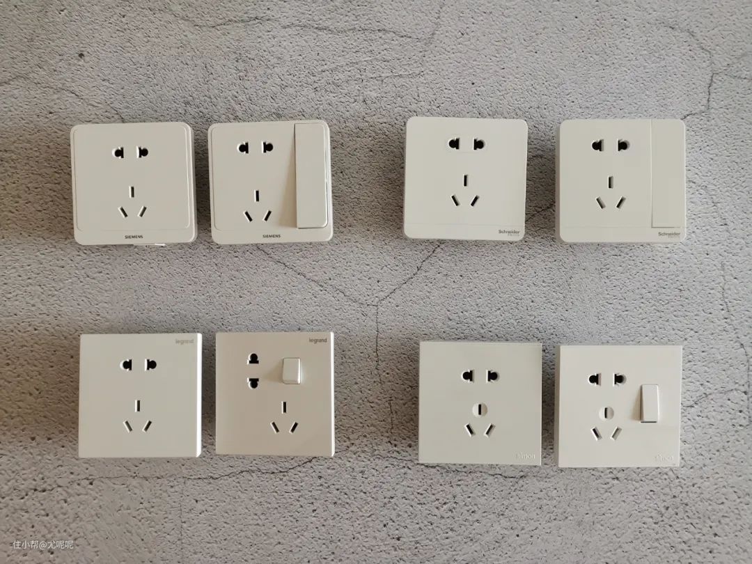 插座方面的西门子和施耐德的外观风格基本和开关一致,但是罗格朗和西蒙的带开关五孔插座都采用的是小开关,个人觉得在外观上稍逊一筹。