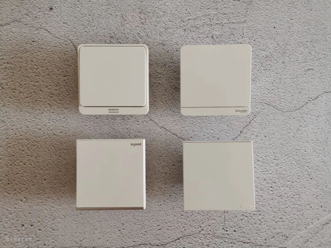 四款开关中西门子和施耐德的接线螺丝在上边,安装时比较方便。而罗格朗和西蒙的接线螺丝一上一下,安装时不是很方便。