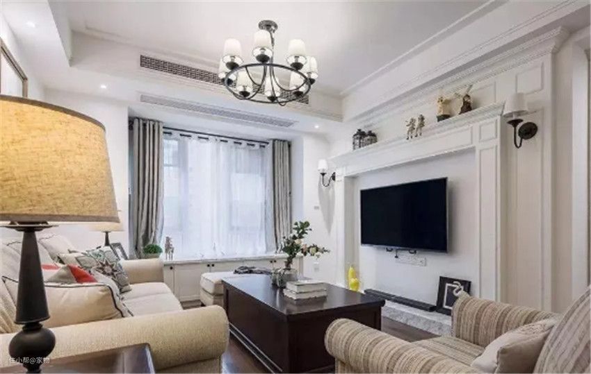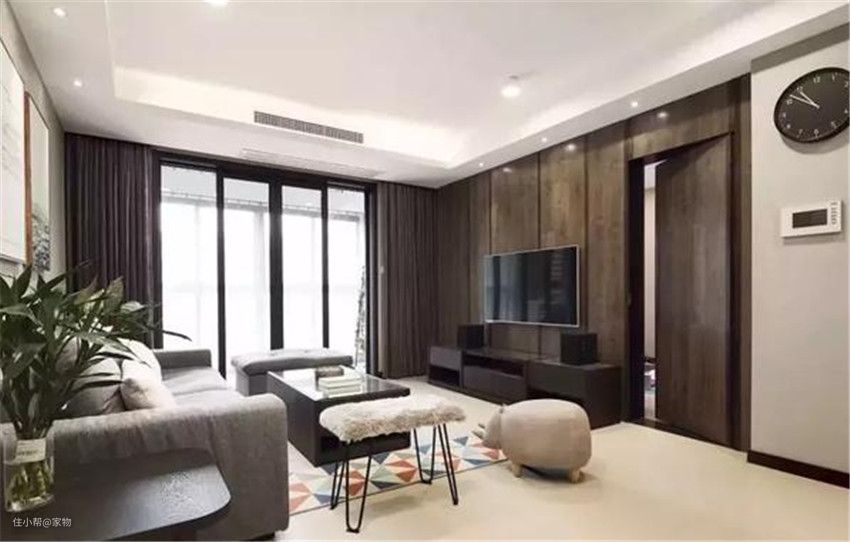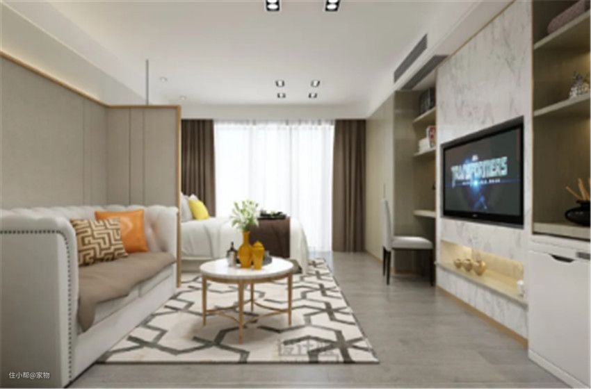 直接用幕布覆盖,做成投影墙代替电视墙,既省地方还让客厅更加简洁大方。