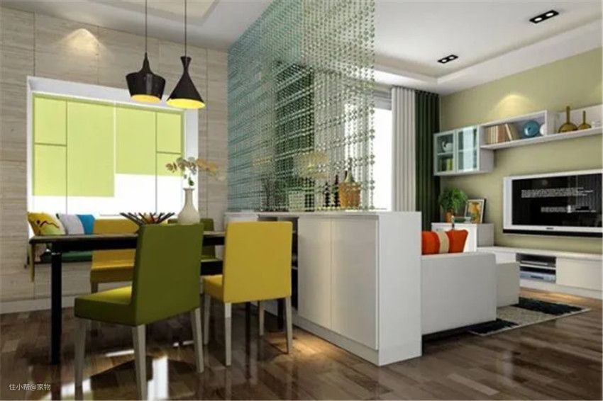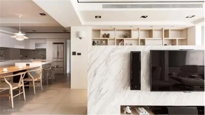 当然如果家中的客厅与厨房是相互连接的,电视墙本身面积也小,