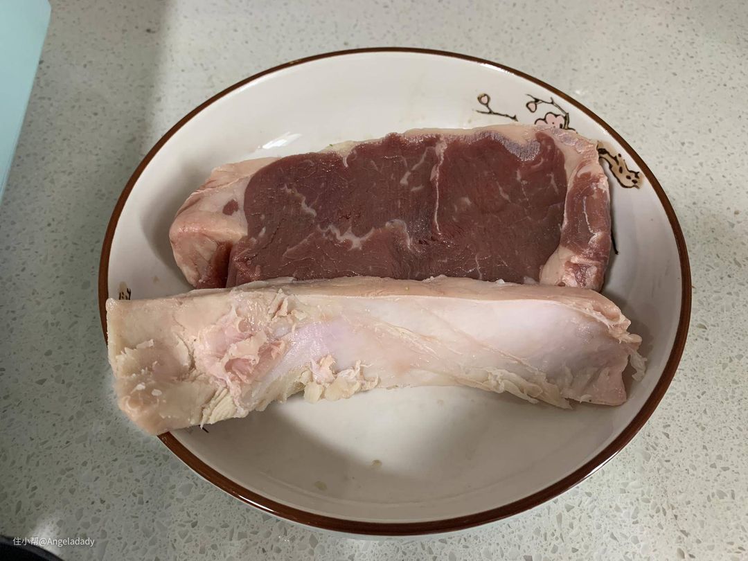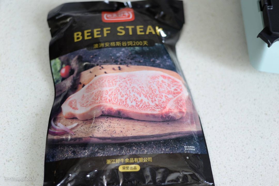 ▲今天选了农夫好牛的西冷厚切牛排,300g,图片上的牛肉纹理,看看就想流口水。