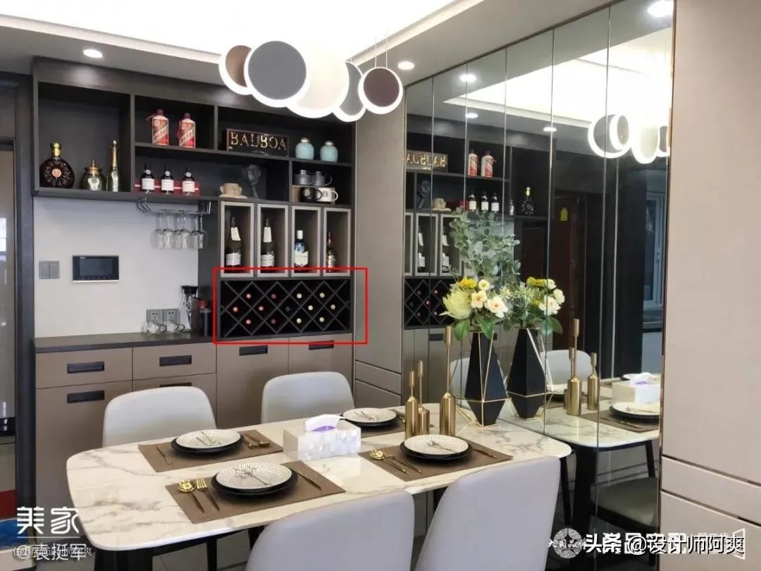 ▲ 所以说,将酒柜换成餐边柜更实用,如果需要做收纳美酒的酒格,也千万记得别固定死了,做成可活动的,打扫卫生时抽出来用水冲一冲就干净了,省心省力。