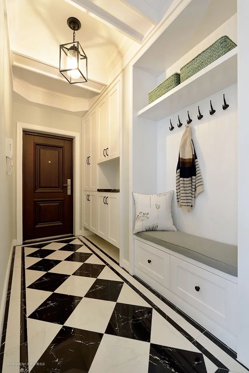 如果定制鞋柜让空间感觉太拥挤的话,也可以采用成品的矮柜鞋柜布置。