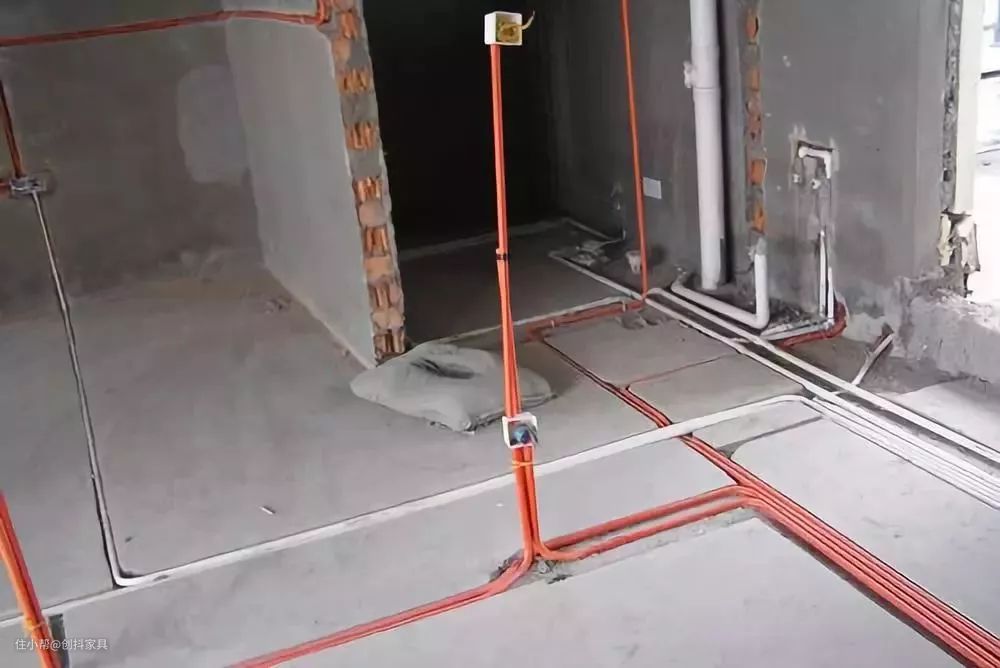7、严禁线管铺设在厨房,卫生间地面上,防止水渗入线管内。(在卫生间的地面上不能有任何的线管,在这一点上我们必须要加强处理。)