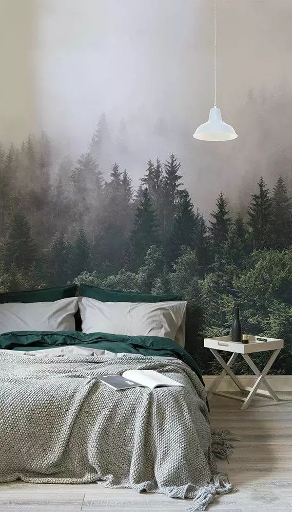 🔺还可以选择如水彩晕染效果的壁纸,这种图案的层次感很强,同时色彩柔和,能够让人感到放松和宁静,也是为卧室色彩搭配时添加一抹亮色的不错选择。