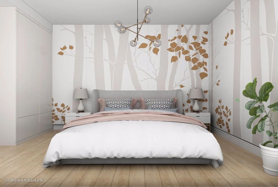 🔺还可以将多面墙安装集成板,或者是将衣柜做成推拉式,衣柜门样式图案定制为与集成板相同,这样整个空间的视觉效果一下更宽敞了,同时如果图案是自然景色,更有一种沉浸式的体验,恍惚整个人身处自然。睡眠也会更加香甜。