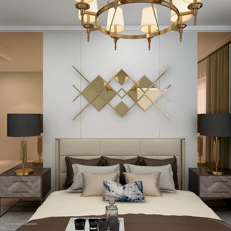 🔺墙面的金属浮雕装饰与吊灯的金属边框遥相呼应,体现高贵奢华之感又不会显得浮夸。