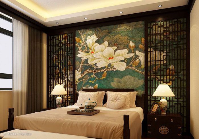 墙纸、壁布因其丰富多彩的图案花样而大放异彩,多见于中式风格的装修。