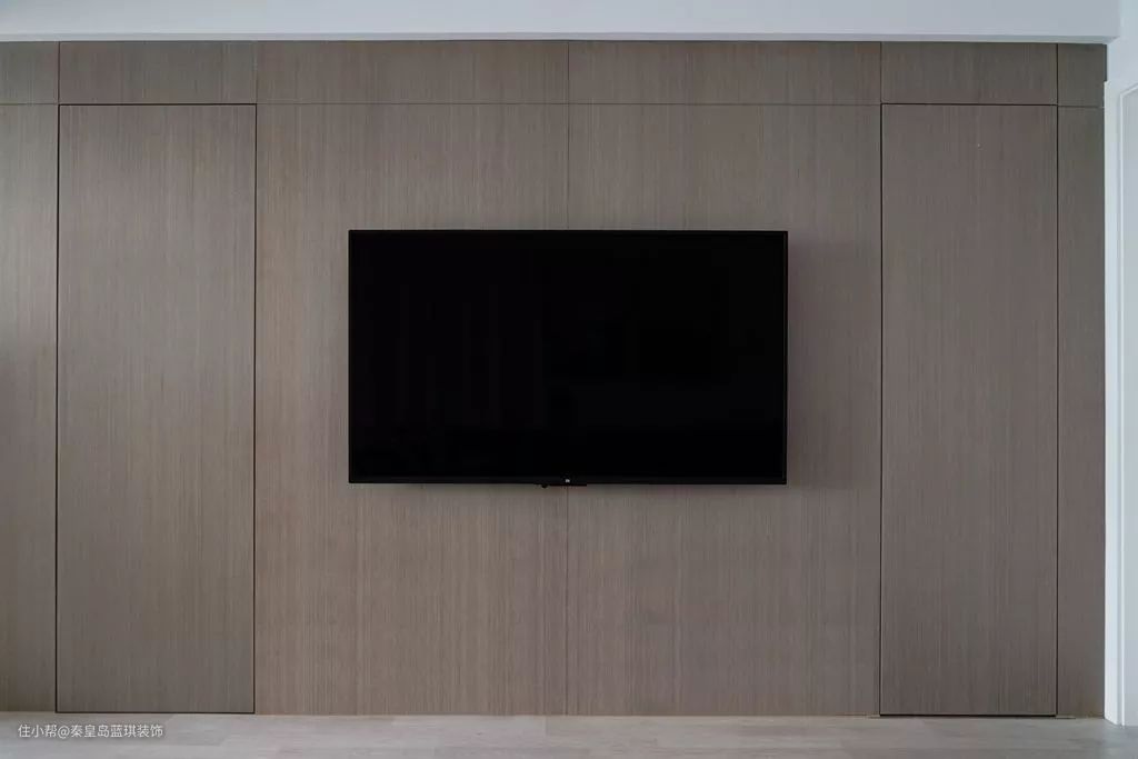 ▲电视背景墙有个创意的隐形门设计,门一关整体感很强,门一开,就可以看到两个不同的功能区间。