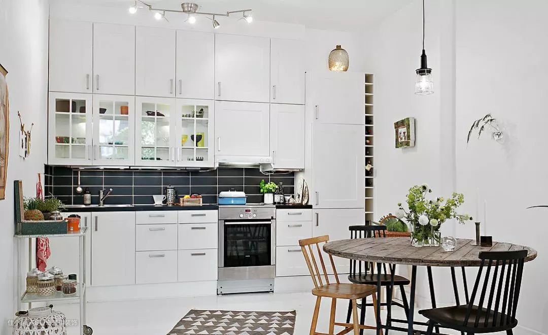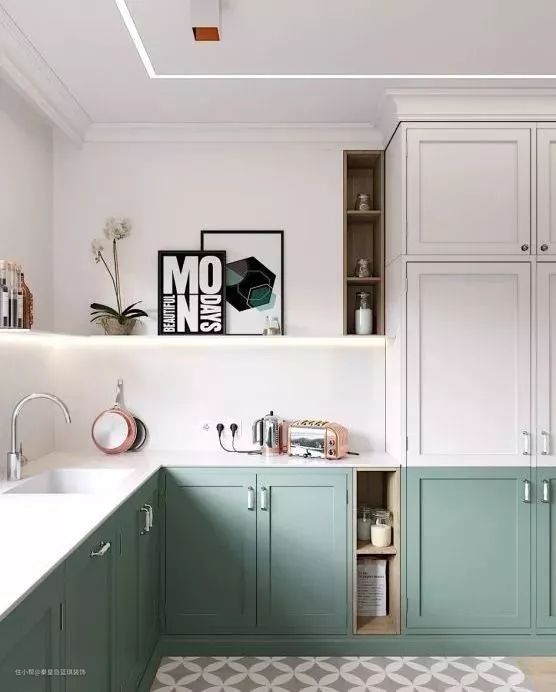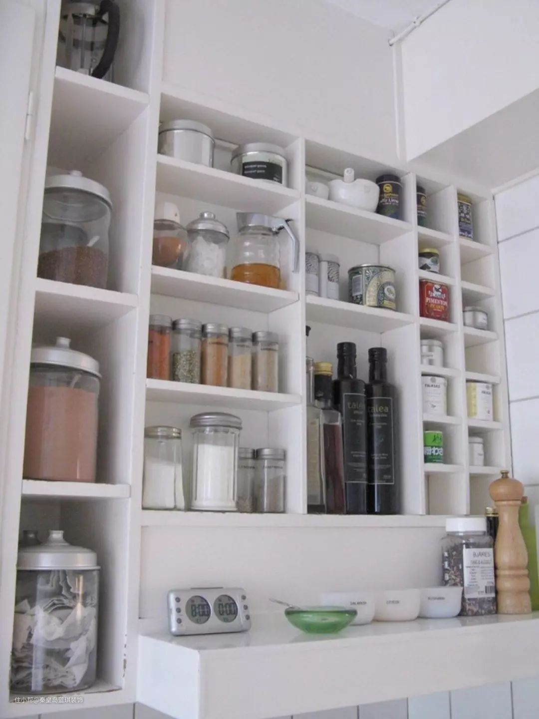 (橱柜不带柜门就敞着用,墙角空间也不浪费)橱柜是厨房的收纳大件,有双开的、带抽屉的、玻璃柜式、开放式等,款式多大家可以灵活搭配使用。