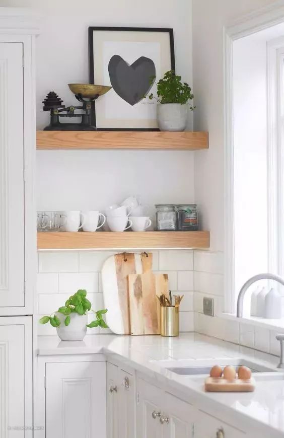 小厨房比较鸡勒墙角可以尝试使用隔板架,也能收纳比较多的小杂物。