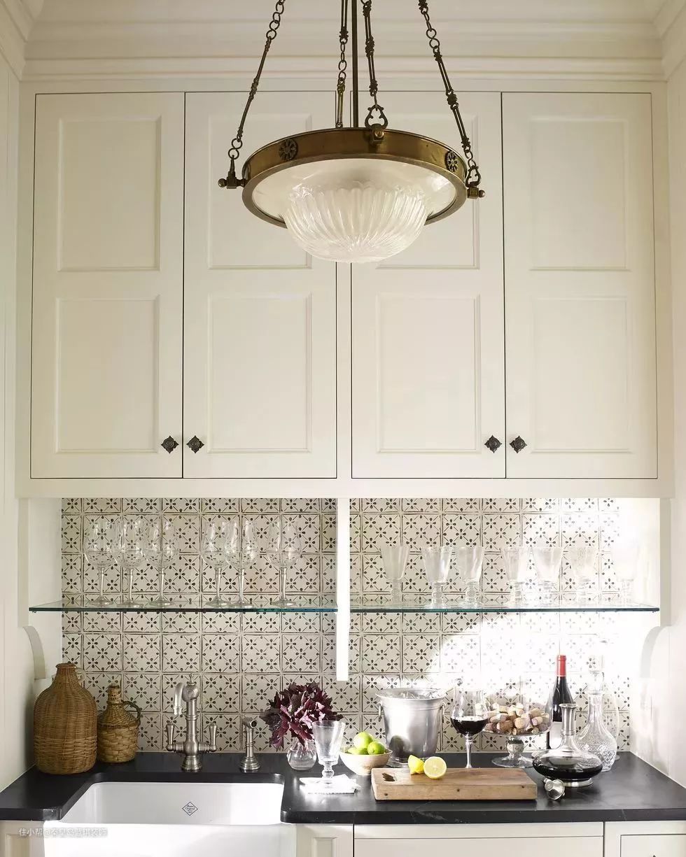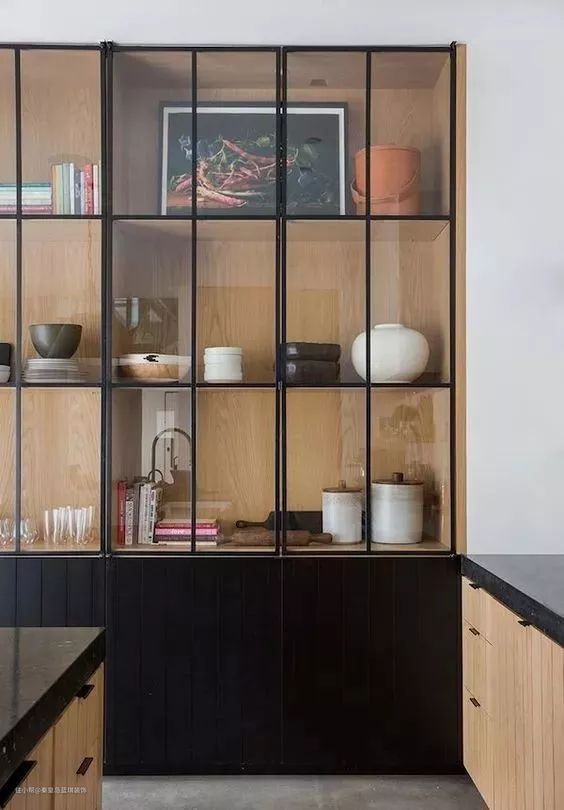 比较大的厨房可以安装部分玻璃橱柜,通透明亮颜值高,还能一眼找到自己想要的东西。