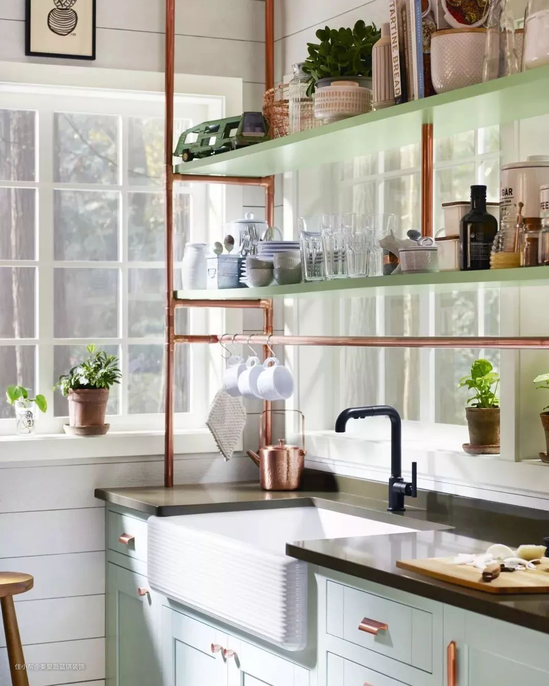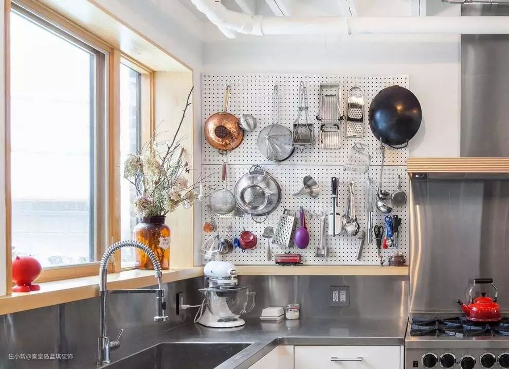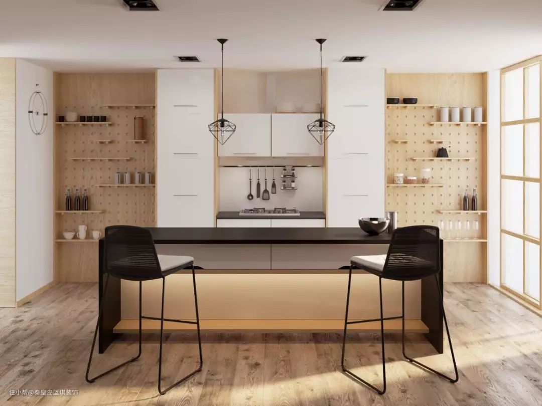 洞洞板和隔板的设计更文艺清新,开放式大小厨房都适合。