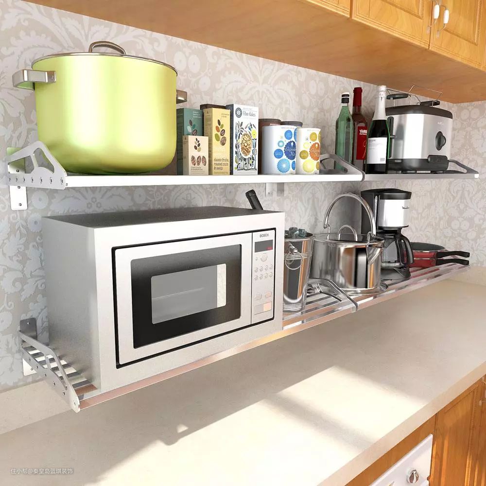 缩小隔板架的尺寸,安装在橱柜下方空间,也能收纳不少厨房小家电。