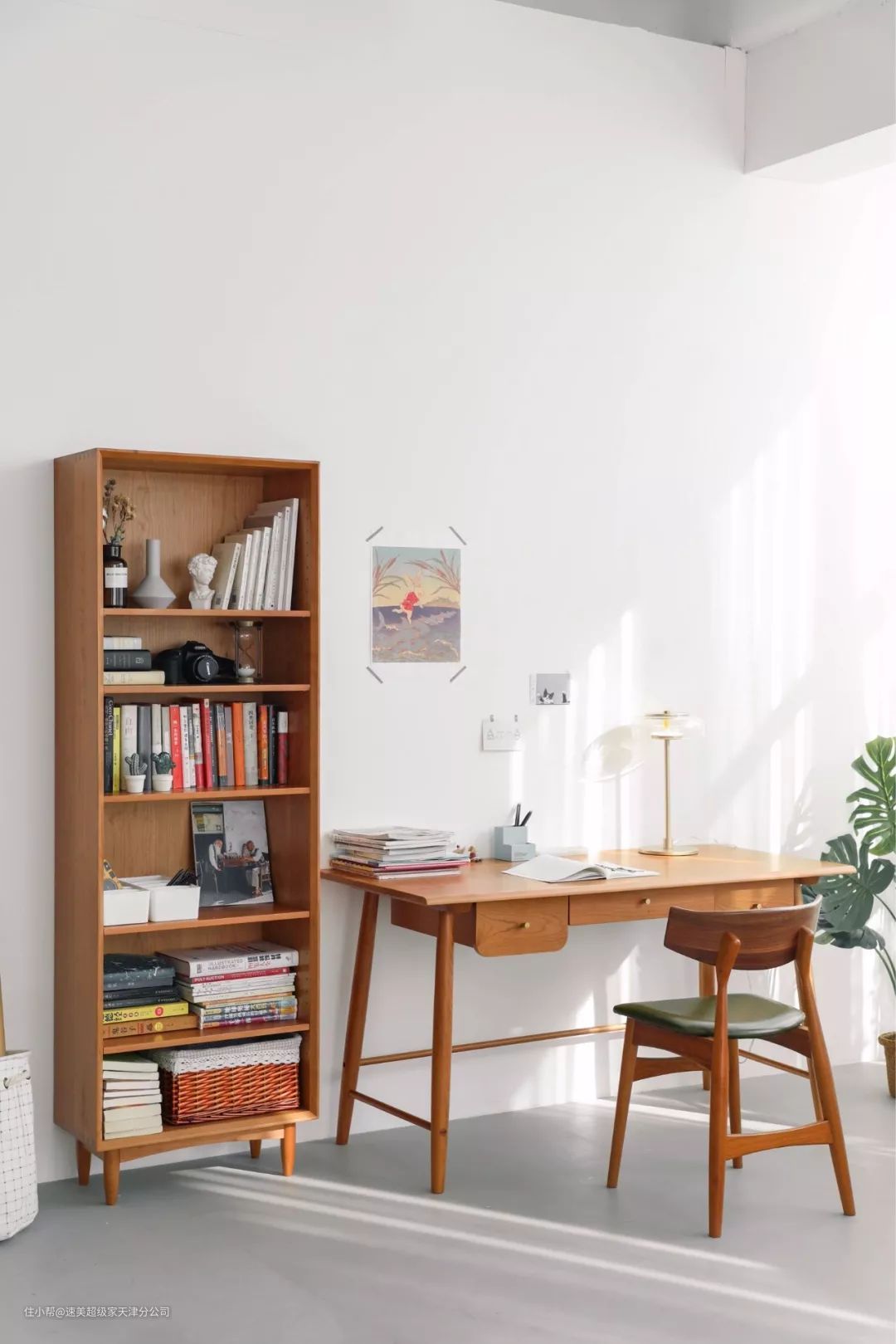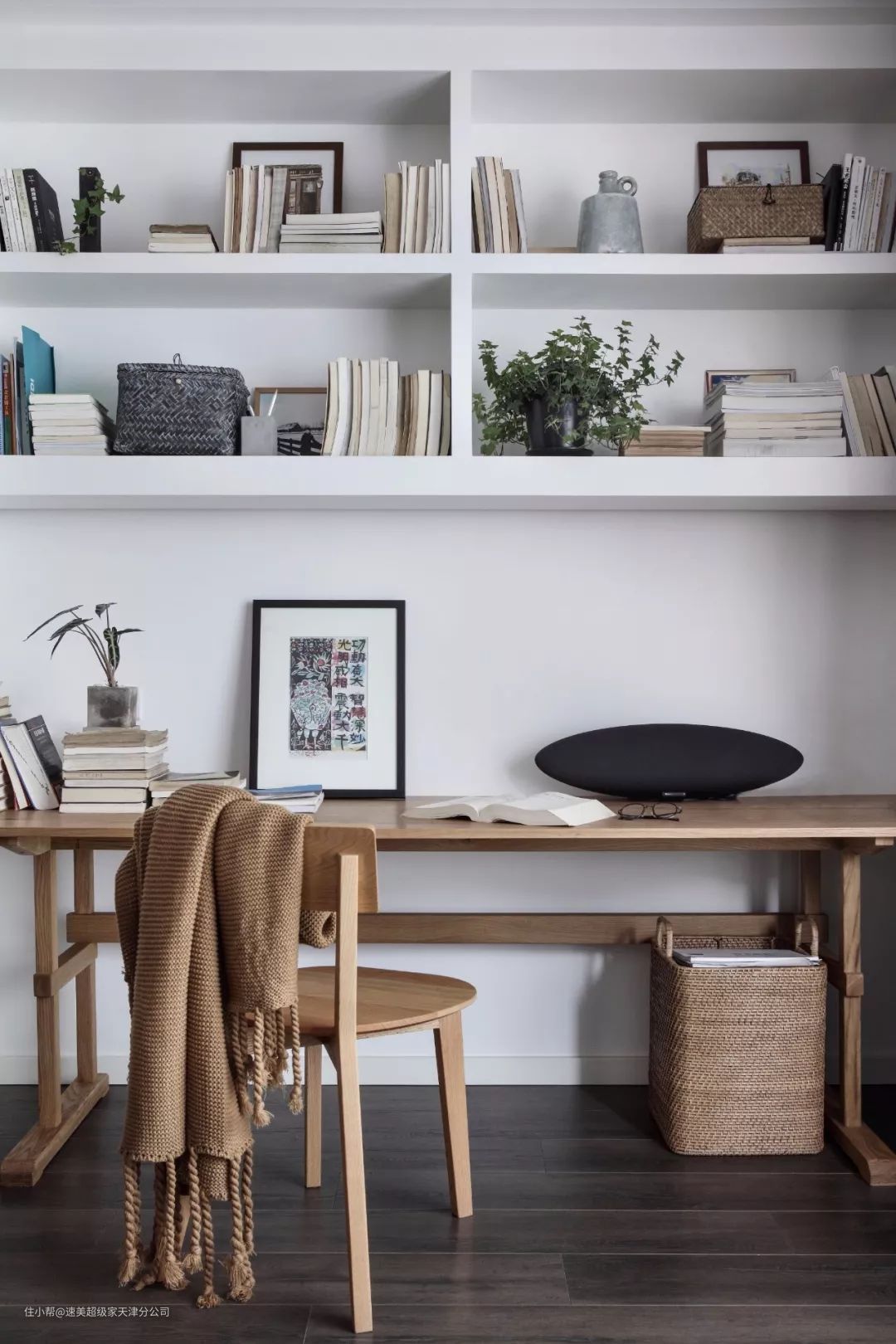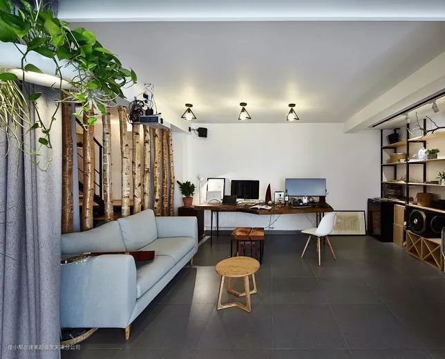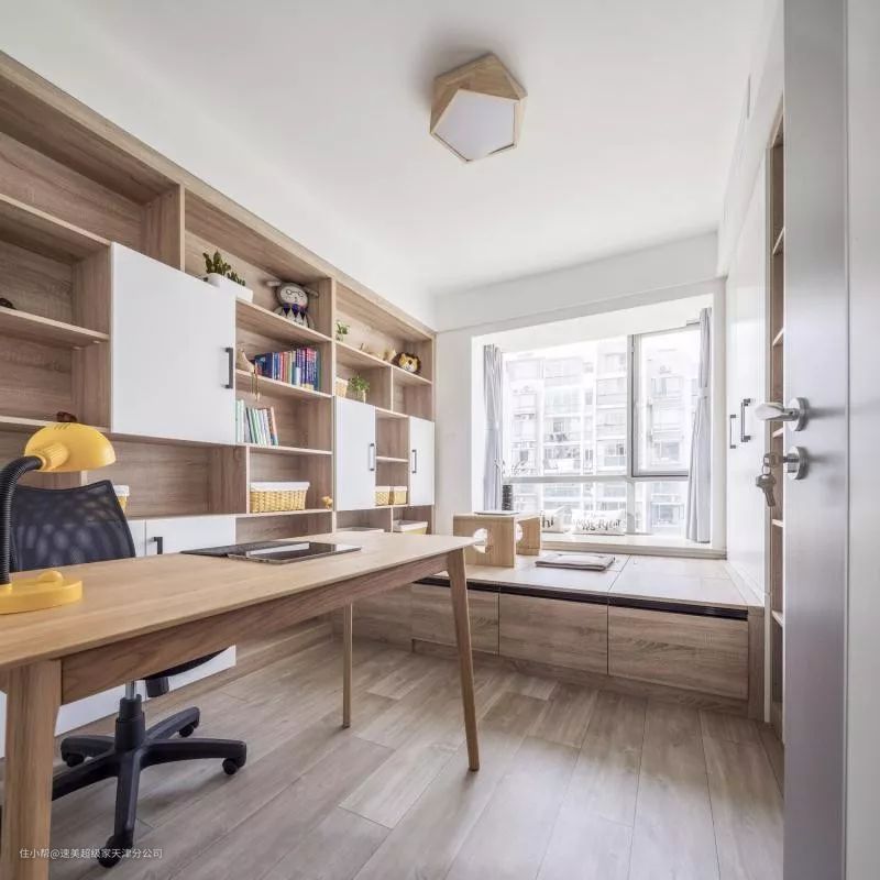 ▲原木质感的书桌,让办公空间自然舒适。