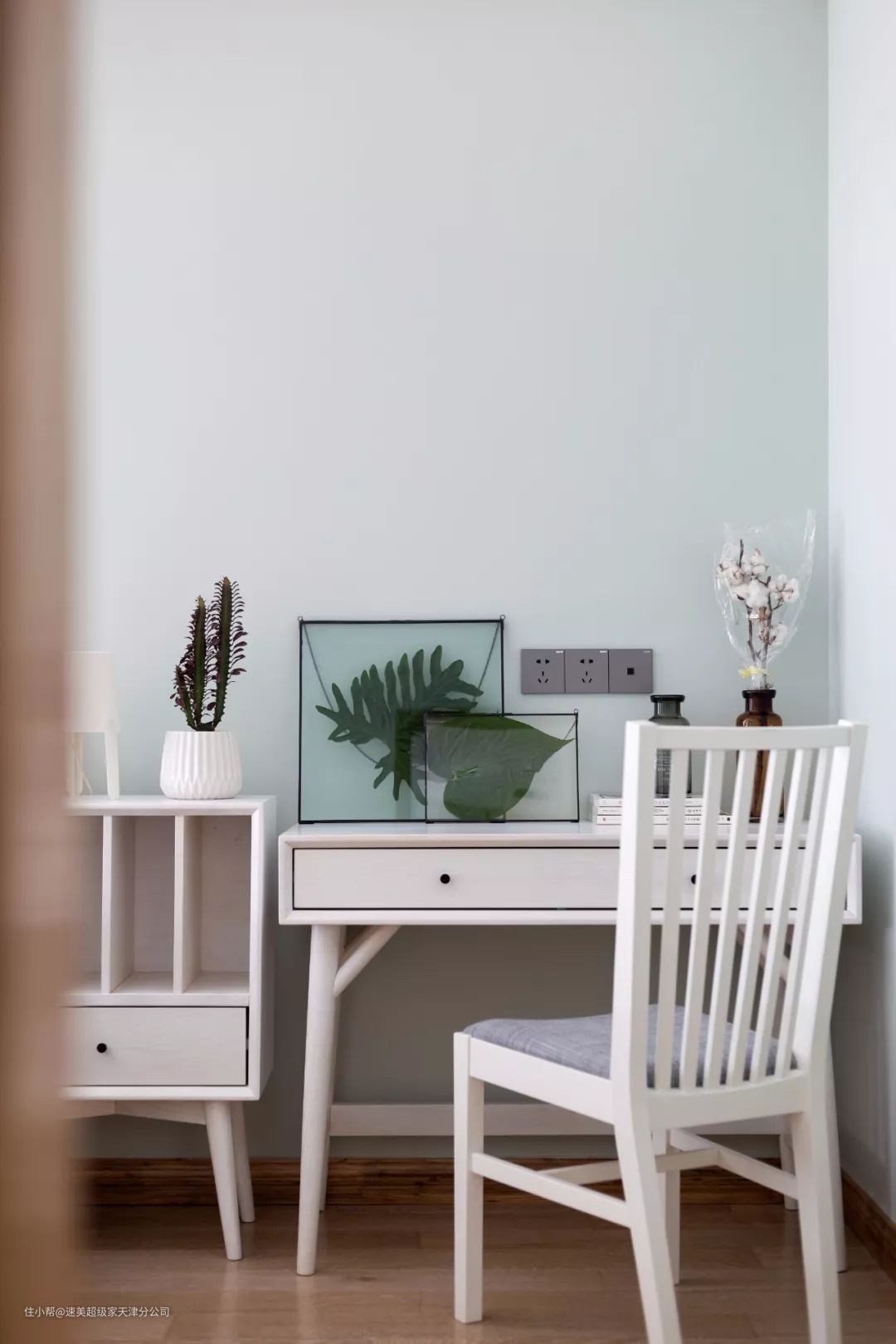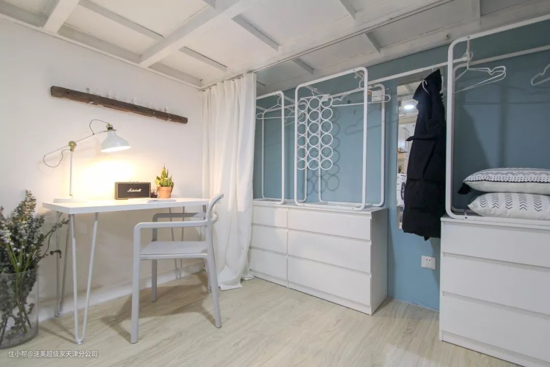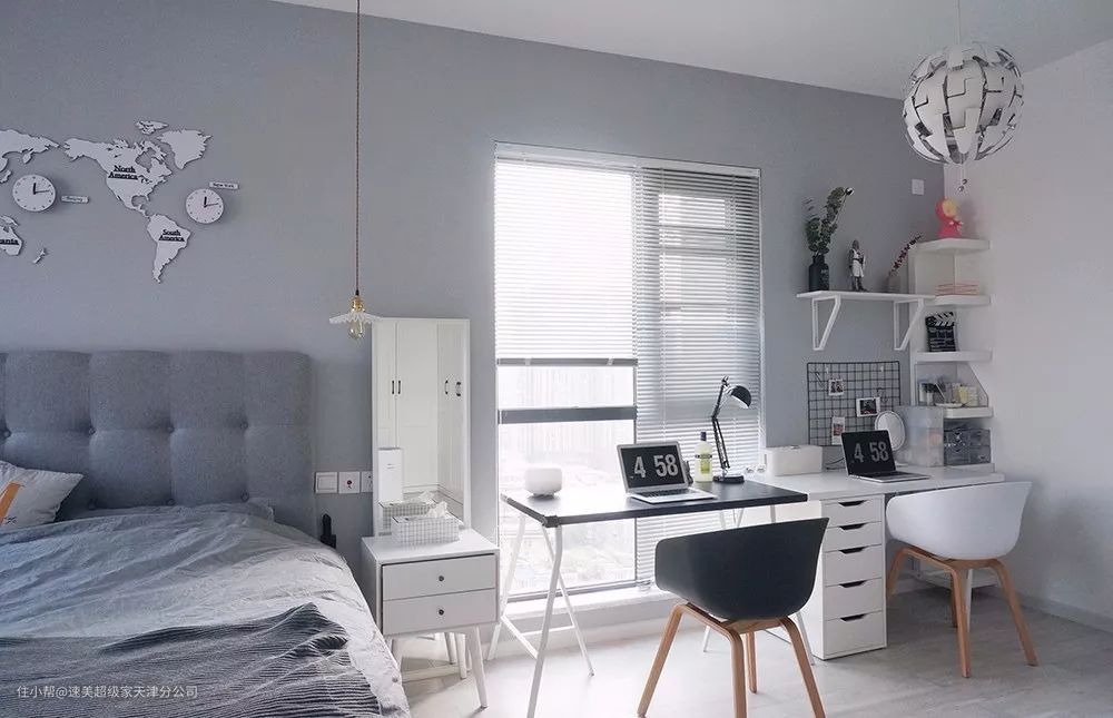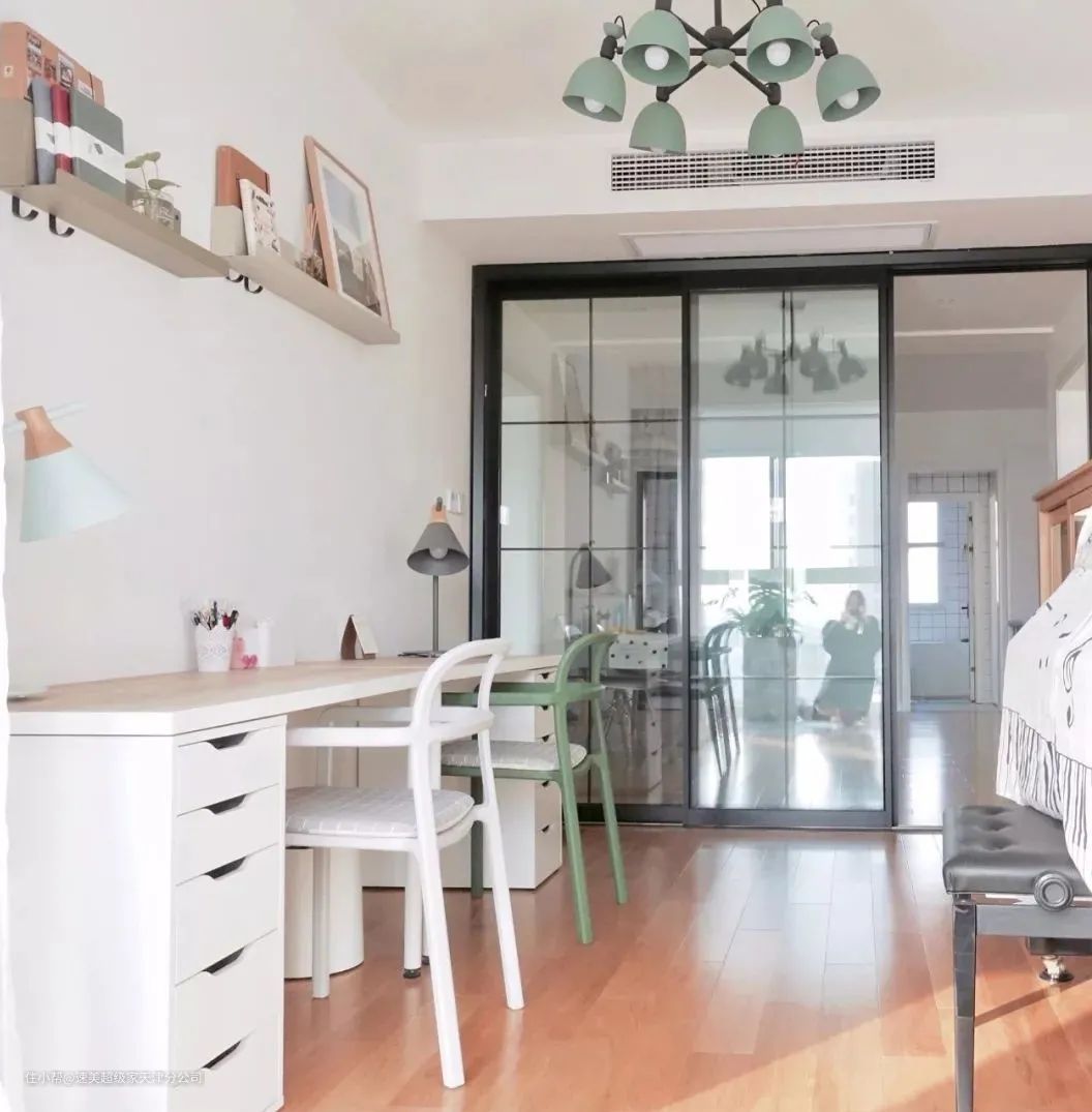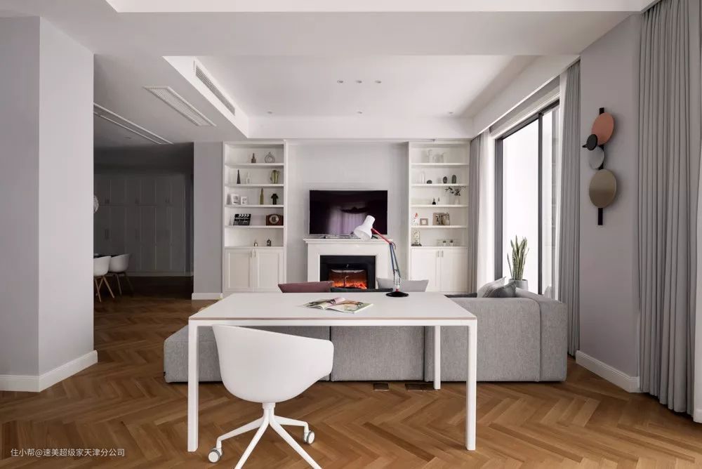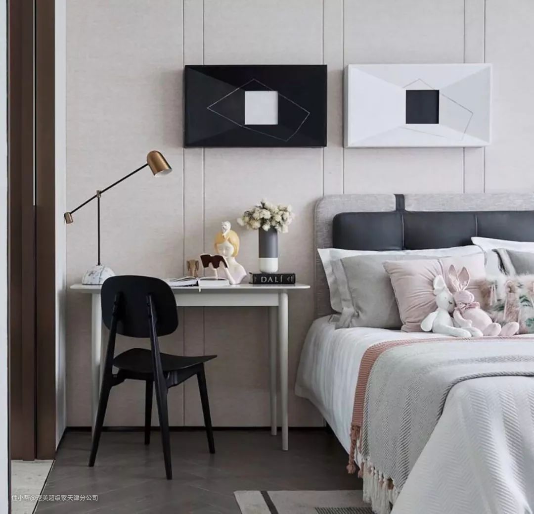 ▲干净优雅的白色书桌,也让空间更加华丽精致。