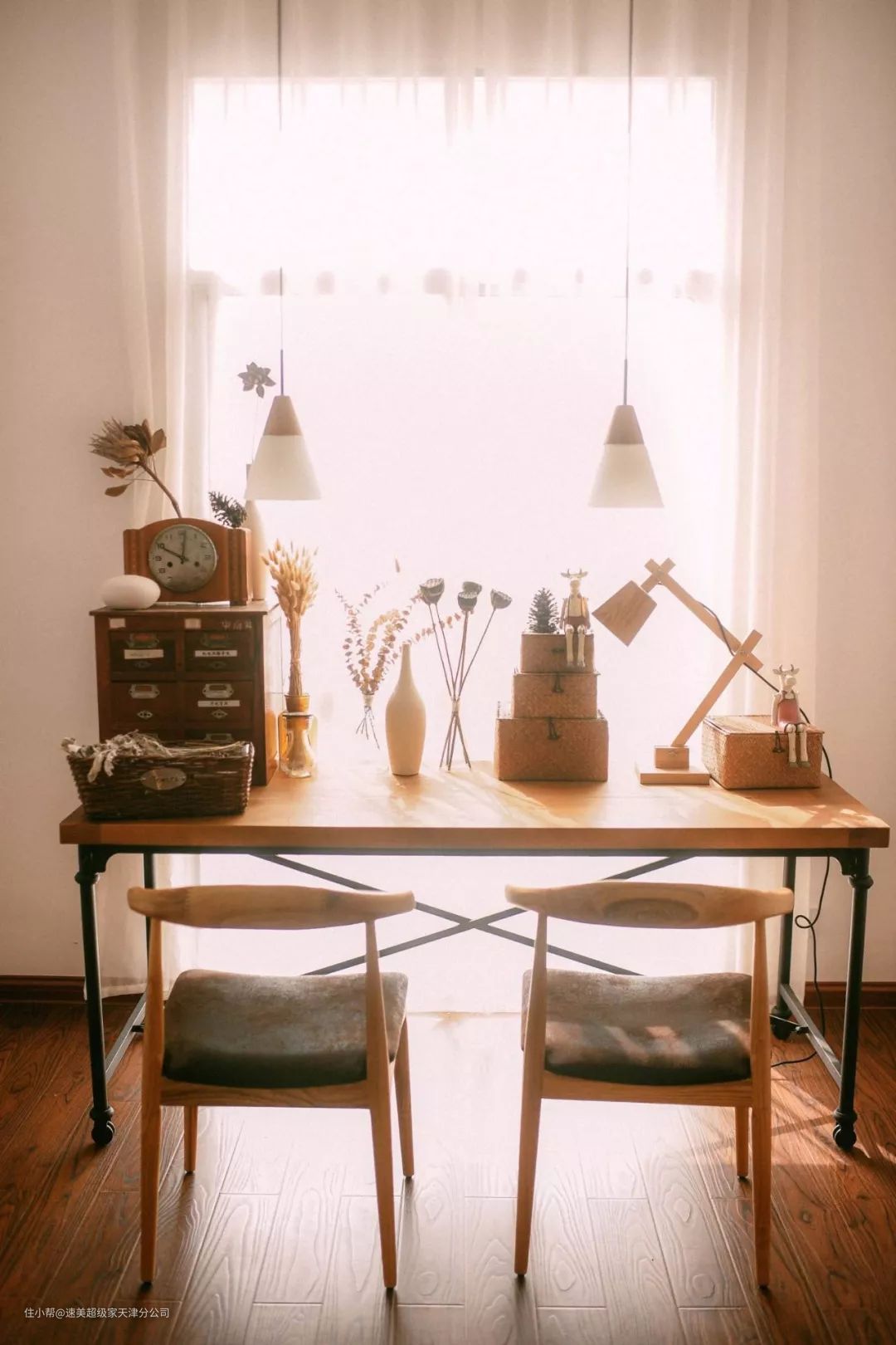 ▲铁艺脚的书桌,整体质感小资情趣。