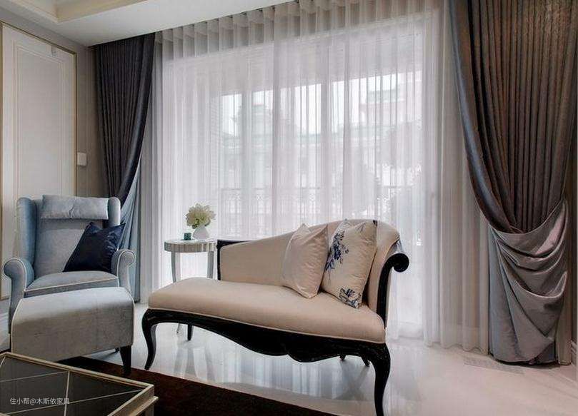 4、拖地这种适合窗帘底部有褶皱和流苏好看,不然硬挺材质的窗帘拖地累赘。