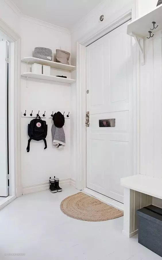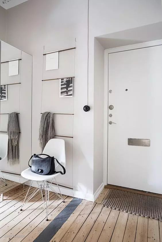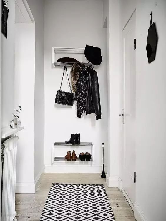 家不同,当然建筑结构也不相同,很多小户型的玄关是容不下大壁柜的,或许下面的方法能解决问题,在墙上安装吊钩,同时在下方辅助小沙发