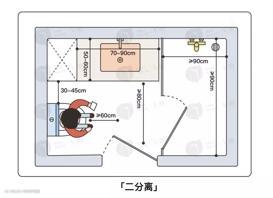卫生间太小、淋浴区、马桶区挤一块儿?如何实现小面积卫生间的高效布局,打造迷你款干湿分离?住小帮来支招,平面解析+3大案例解读,快来解锁你家的“同款布局”吧!