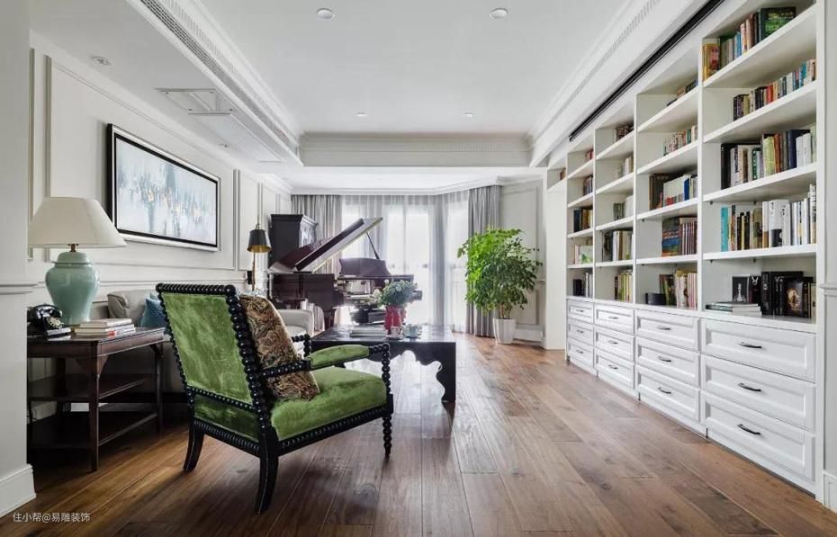 并不是说『看电视模式』不好,但随着社会发展,大家获取信息、休闲娱乐不再局限于电视节目,很多年轻家庭甚至电视都看得少了。每个家庭每个不同的阶段对于客厅的需求都是不一样的,举例一些不同功能模式的客厅供大家参考。1、 书虫模式 有一部分人喜欢看书,有一部分人喜欢买书,家里会有比较多的书,客厅可能会兼具『超大书房』的功能,我称之为『书虫模式客厅』。
