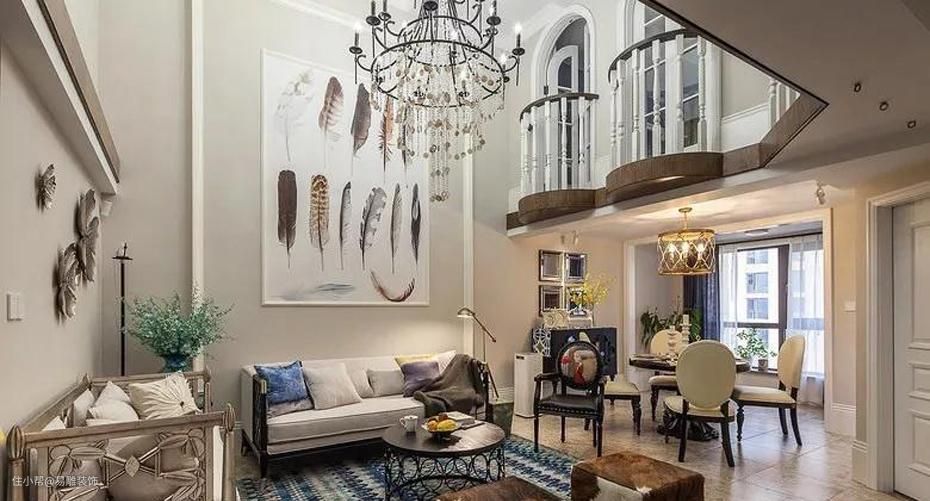 ▲ 一盏高颜值的大吊灯是挑高型客厅的绝佳搭配